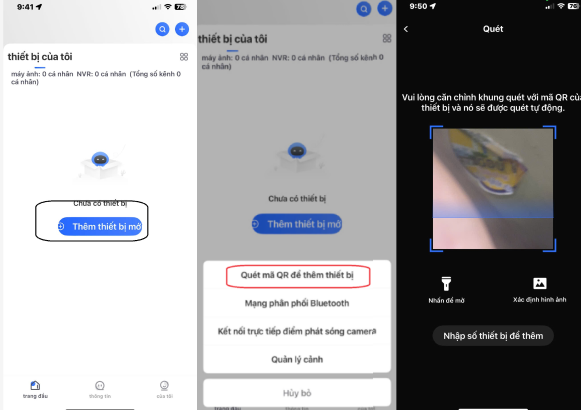Bước 2: Thêm thiết bị camera vào điện thoại bằng cách quét mã QR hoặc thêm thủ công