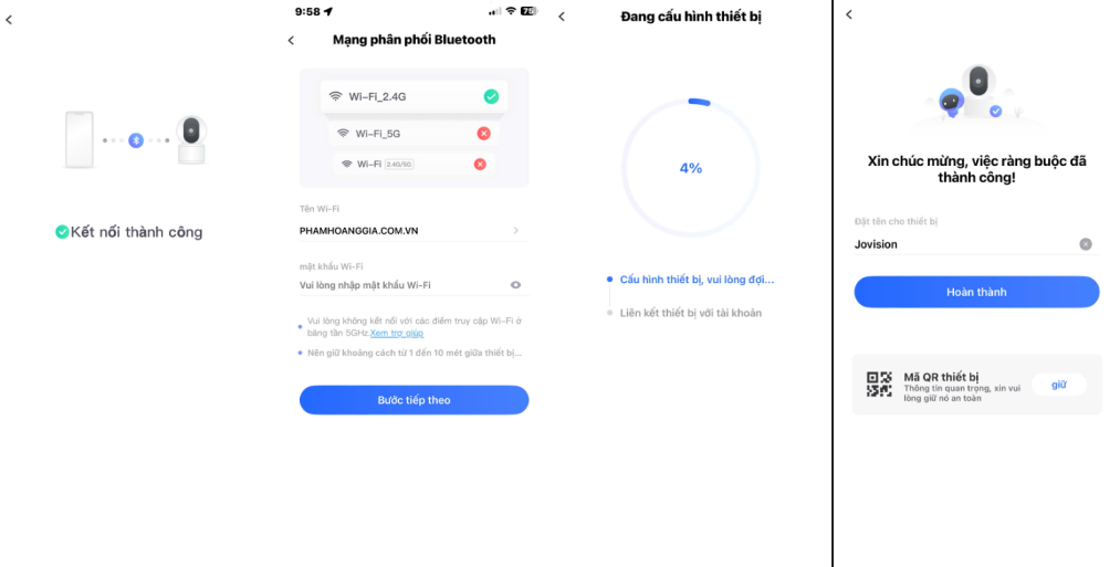 - Sau khi kết nối thành công sẽ hiện lên màn hình đổi tên camera sau khi đổi tên bạn có thể bấm " Hoàn Thành " để vào camera JOVISION